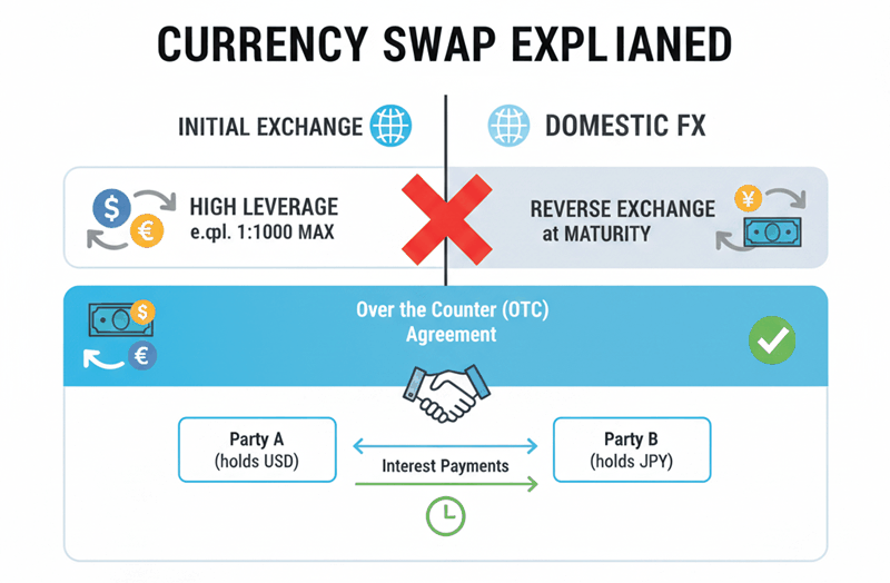 通貨スワップとは、異なる通貨間の金利差を調整する仕組みであり、FX取引では「スワップポイント」として日々損益が発生します。