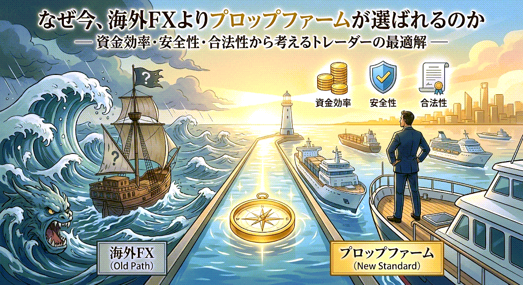 本記事では、海外FXとプロップファームを構造的・法的・実務的な観点から比較し、なぜプロップファームの方が優れていると評価されるのかを詳しく解説する。